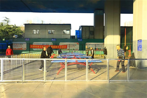 海泊河公园位于青岛市市北区的老四方、老台东接合部,占地面积22.7万平方米,作为老市区人口最为稠密的区域之一,有着60多年历史的海泊河公园一直是附近居民休闲娱乐的“大本营”,年游客量近百万人次。由于历史原因,公园里虽然有大大小小十几处居民自发形成的“健身点”,但并没有统一安装符合标准的健身设施,球速体育集团根据市北区海泊河周边居民的健身运动需求及现有生态环境定制化设计,因地制宜地适配各种健身设施,新增笼式多功能场地、笼式足球场地、乒乓球区域、桥下热身区域、智能器材区、儿童及老年健身苑等活动场地,拓展了公园体育功能,满足了不同人群的健身需求。
