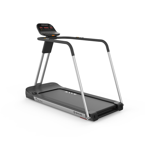 舒华V9尊享版跑步机SH-T899设有辅助上下机踏板的驱动踏板,控制速度在-5至10km/h内可调,坡度也可在-3至15%内可调,跑台尺寸是580×1570mm,持续马力是AC 3.0HP。